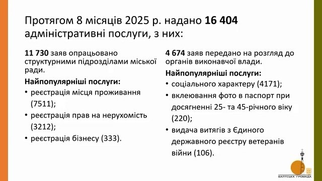Окремо міський голова зупинився на питанні паспортних послуг. Усі технічні умови та обладнання для їх надання громада вже забезпечила. Проте держава посилює вимоги до інформаційної безпеки, зокрема через кібератаки, тому процес запуску затягнувся. Сьогодні спеціалісти ЦНАПу завершують узгодження безпекових і технологічних процедур із Державною міграційною службою. Очікується, що вже цього року у Балті стане можливим оформлення паспорта громадянина України (ID-картки) та закордонного паспорта без виїзду з громади.