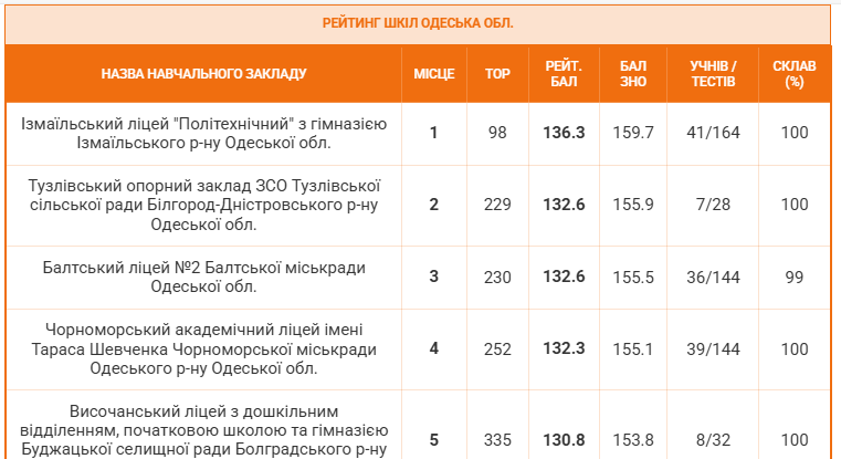 Інформаційний ресурс «Освіта.ua» оприлюднив рейтинг шкіл Одеської області за підсумками національного мультипредметного тесту (НМТ) 2025 року.