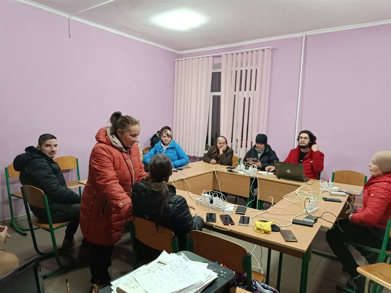 Тому вже зранку в центрі міста почав працювати пункт незламності, розгорнутий у Центрі дитячої творчості. Люди приходили ще до дев’ятої: зарядити телефони, скористатися інтернетом, зігрітися. Я й сама скористалася нагодою попрацювала за ноутбуком та "підзарядилася".