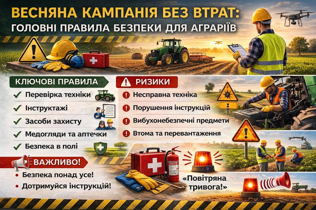 Весняно-польові роботи – один із найнапруженіших етапів у сільськогосподарському циклі. Саме в цей період збільшується кількість працівників, залучених до ручної праці, обслуговування техніки та роботи з машинно-тракторними агрегатами. У таких умовах навіть незначне нехтування правилами безпеки може призвести до серйозних наслідків.