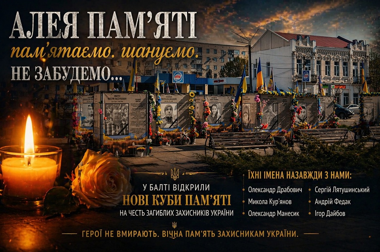 Сьогодні у Балті відбулася подія, сповнена глибокого смутку та водночас великої шани – на Алеї пам’яті відкрили нові меморіальні куби на честь загиблих захисників України.