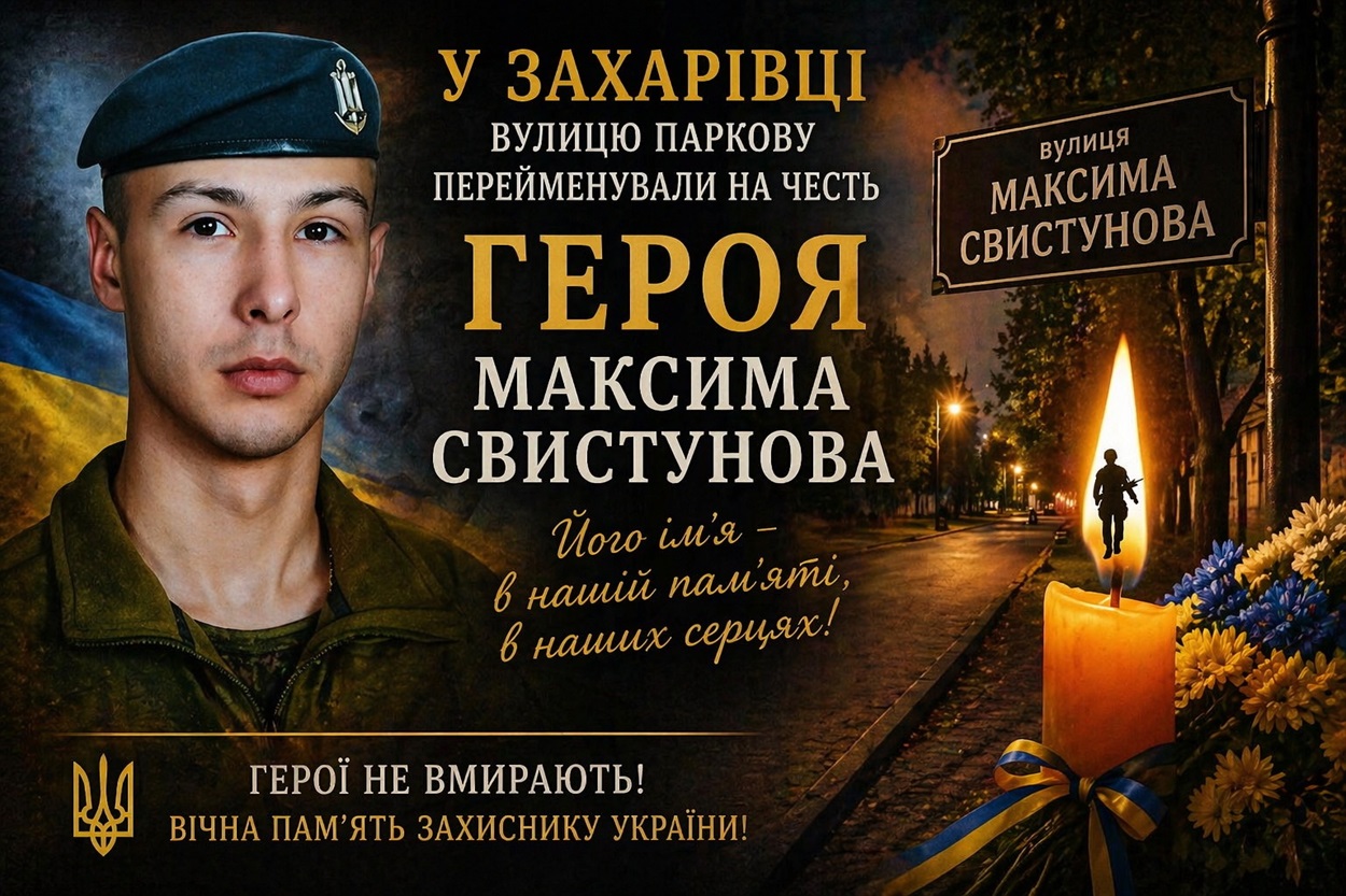 23 квітня 2026 року під час пленарного засідання 61-ої сесії Захарівська селищна рада депутати ухвалили важливе і символічне рішення – перейменувати вулицю Паркову в центрі Захарівки на вулицю Максима Свистунова.